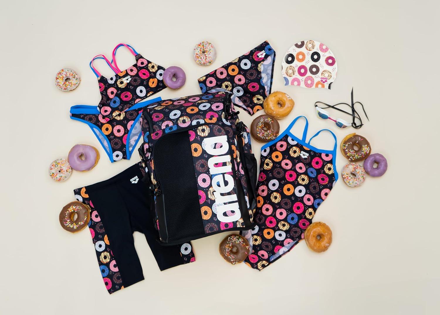 High-end function and high-end fashion! Enjoy the water in this extremely durable, chlorine-proof and eye-catching arena Donuts Challenge Back Swimsuit for women from the trendy Funny Print collection of the arena Performance line. This swimsuit with stylish donuts design is ideal for both competitive and regular swimmers who swim frequently in the pool. The highly chlorine-resistant MaxLife Eco fabric with integrated UPF 50+ UV protection is extremely quick-drying and long-lasting. This eco-friendly evolution of arena's MaxLife fabric contains at least 50% recycled polyester from PET bottles. The open back in combination with thin straps and a high-cut leg provides maximum freedom of movement, excellent feel of the water and reduced drag. Front lined for comfortable coverage. Complete your stylish look with the matching swim cap, goggles and backpack.