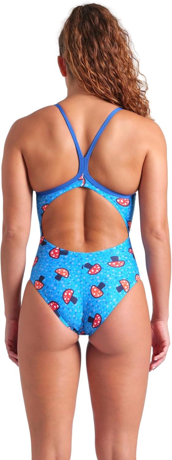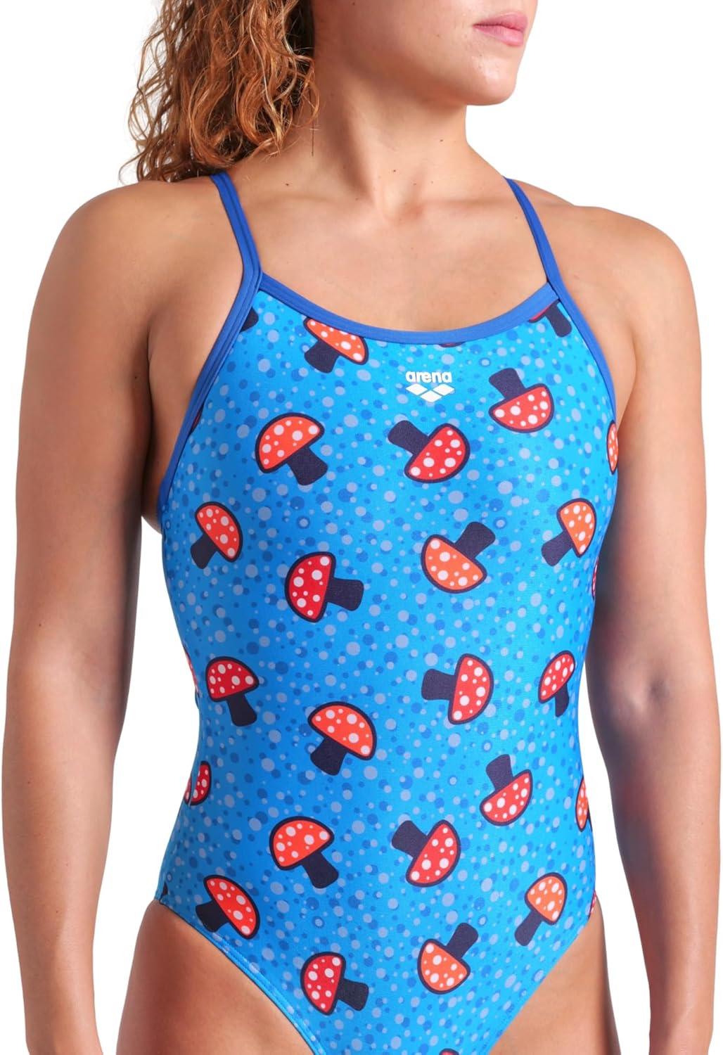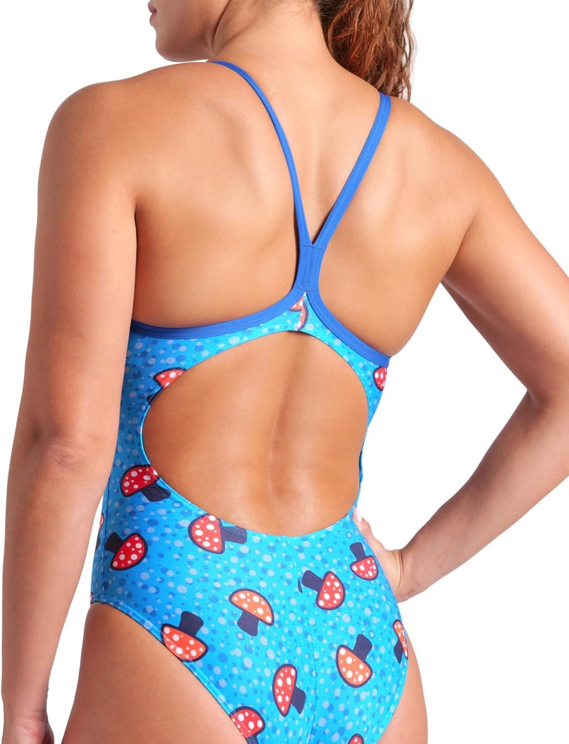 ARENA Women’s Performance Funny Prints Collection Mushrooms Lightdrop Back Swimsuit(Royal/Blue Multi)