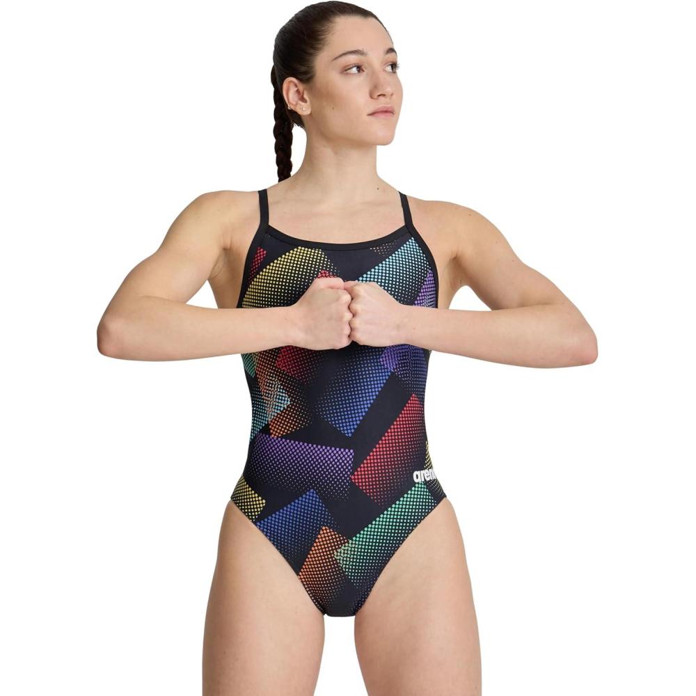 Arena Women’s Performance Halftone Team Print Challenge Back Ladies Bathing Swimsuit(Black/Black Multi)