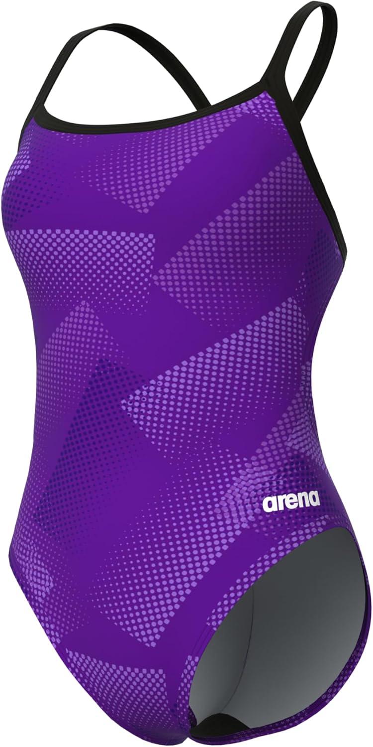Arena Women’s Performance Halftone Team Print Challenge Back Ladies Bathing Swimsuit(Black/Team Purple)