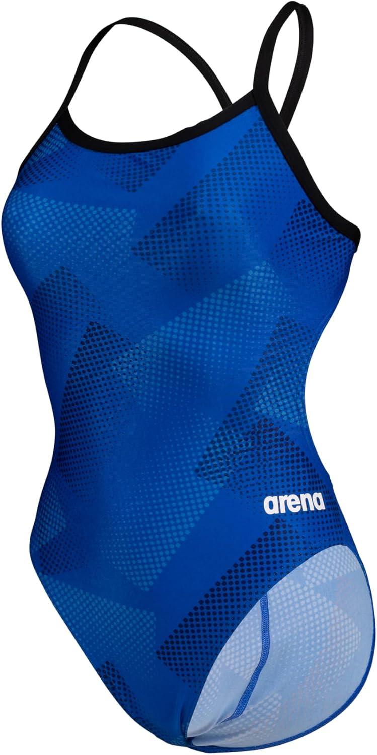 Arena Women’s Performance Halftone Team Print Challenge Back Ladies Bathing Swimsuit(Black/Team Royal)