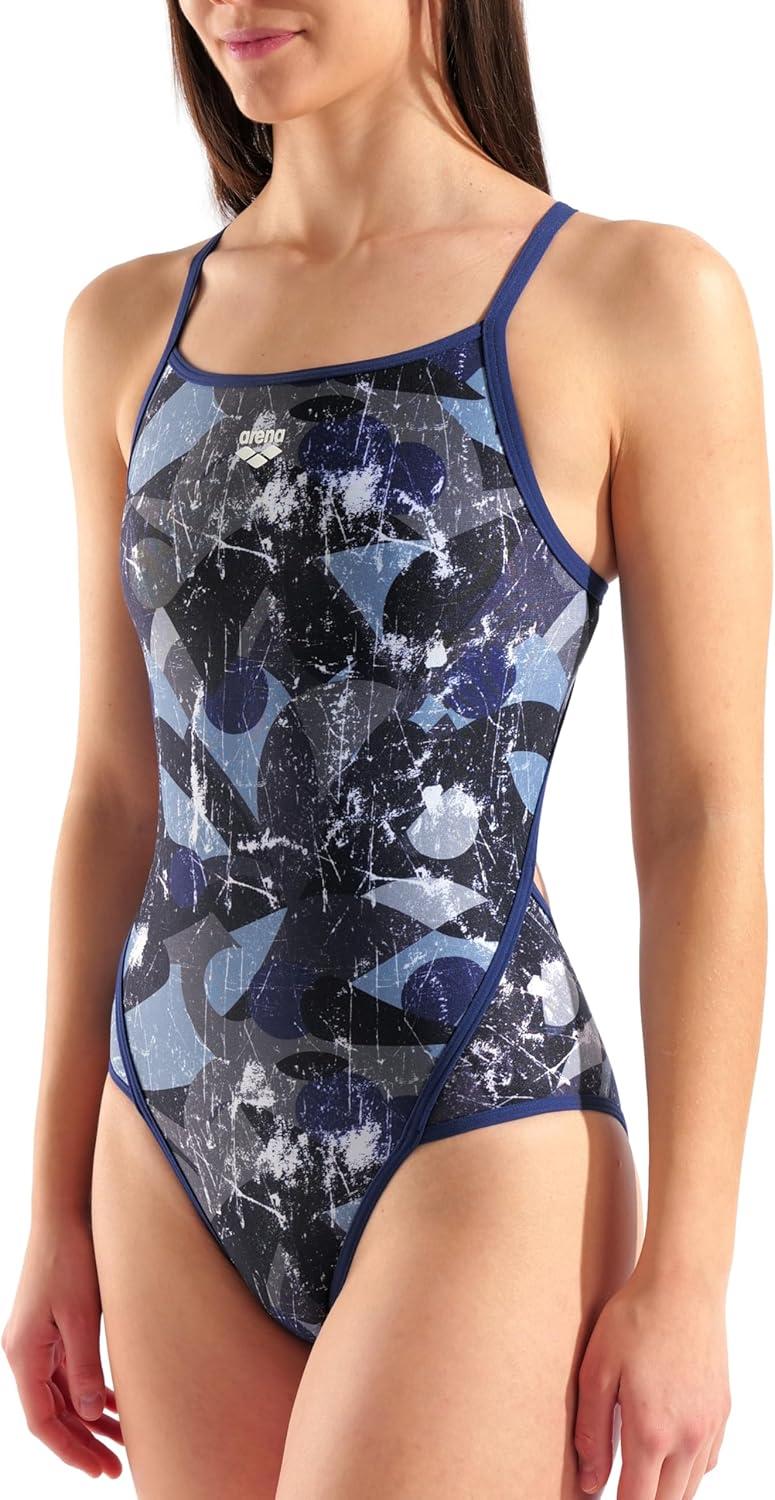Arena Women’s Performance Scratched Super Fly Back Swimsuit Ladies Sports Bathing Suit(Multi Black/Navy)