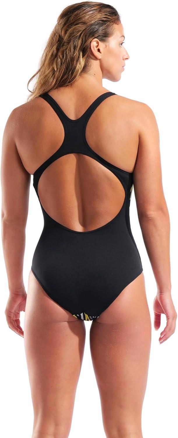 Arena Womens Performance Stripes Swim Pro Back One Piece Swimsuit Wide Straps Ergonomic Back(Black Multi/Black)
