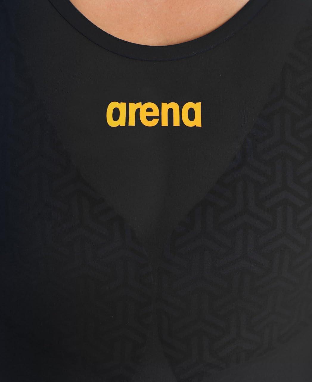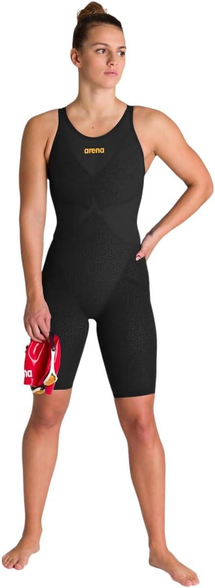 Arena Women’s Powerskin Carbon Glide Full Body Short Leg Open Back Swimsuit for Competitive Racing, Practice Kneeskin(Black/Gold)
