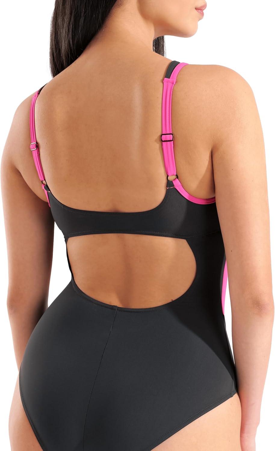 ARENA Women’s Shapewear Makimurax R C-Cup Ladies Tummy Control Shaping Swimsuit(Night Gray/Fairy Rose)