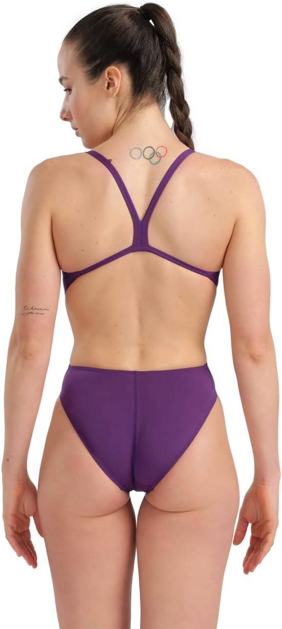 Arena Womens Solid Team Swimsuit Challenge Back MaxLife Open Back Bathing Suit Athletic Swimwear(Plum/White)