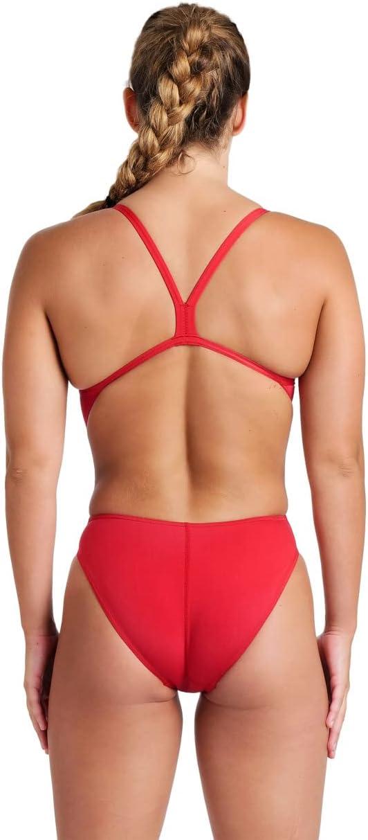 Arena Womens Solid Team Swimsuit Challenge Back MaxLife Open Back Bathing Suit Athletic Swimwear(Red/White)