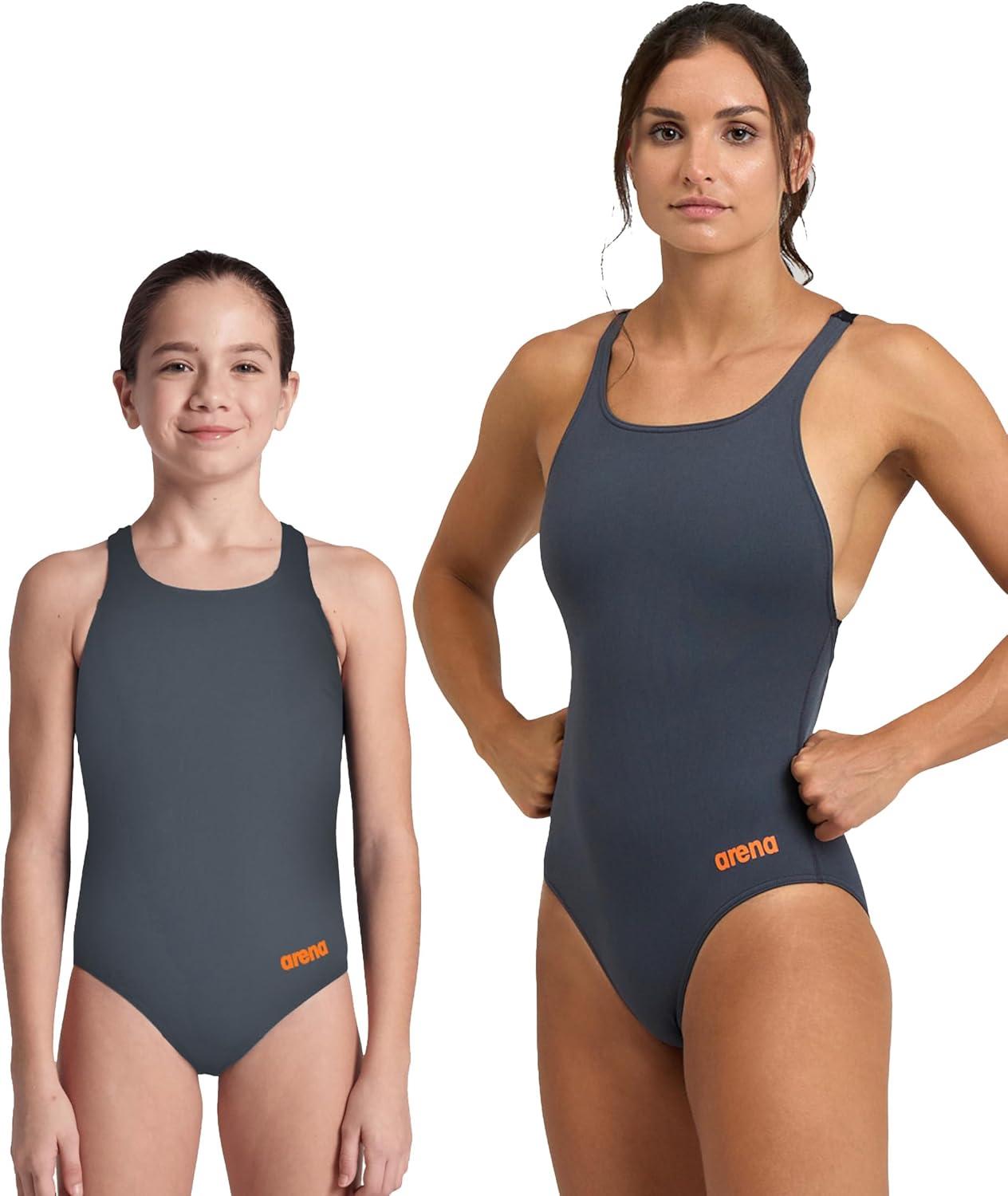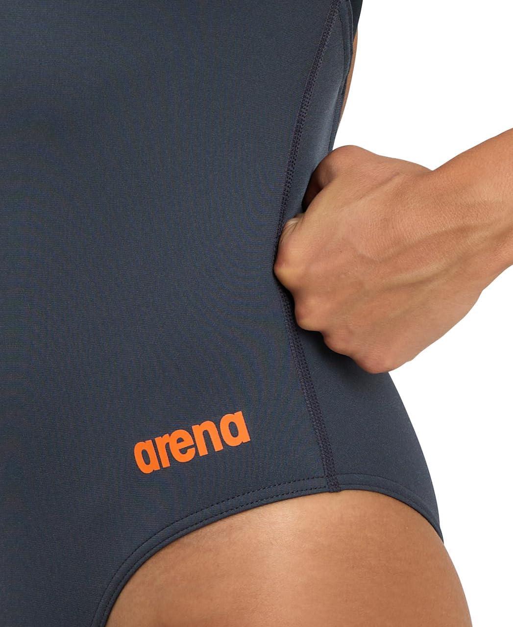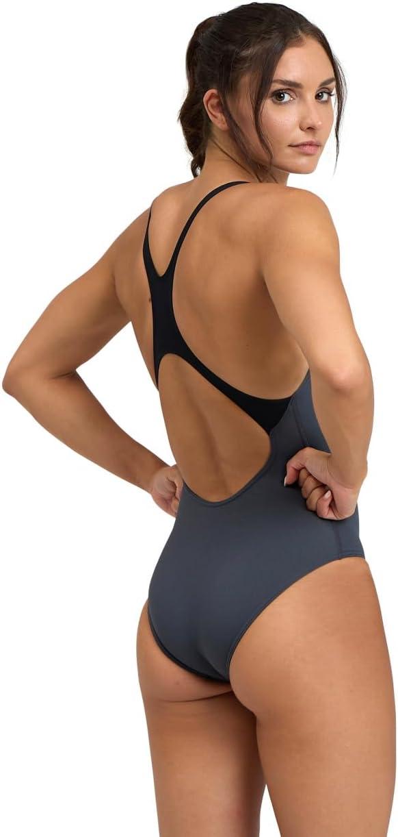 Arena Womens Solid Team Swimsuit Swim Pro Back MaxLife Open Back Bathing Suit Athletic Swimwear(Asphalt/Black)