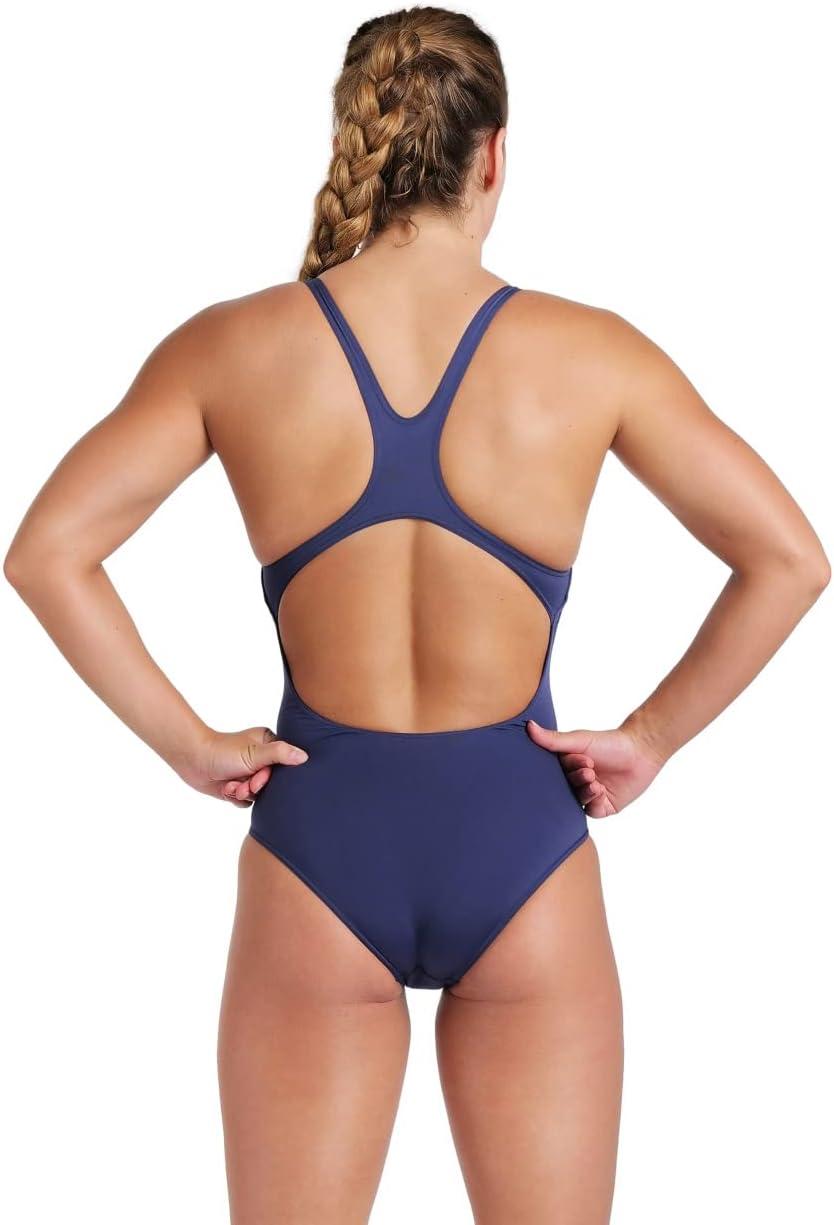 Arena Womens Solid Team Swimsuit Swim Pro Back MaxLife Open Back Bathing Suit Athletic Swimwear(Navy/White)