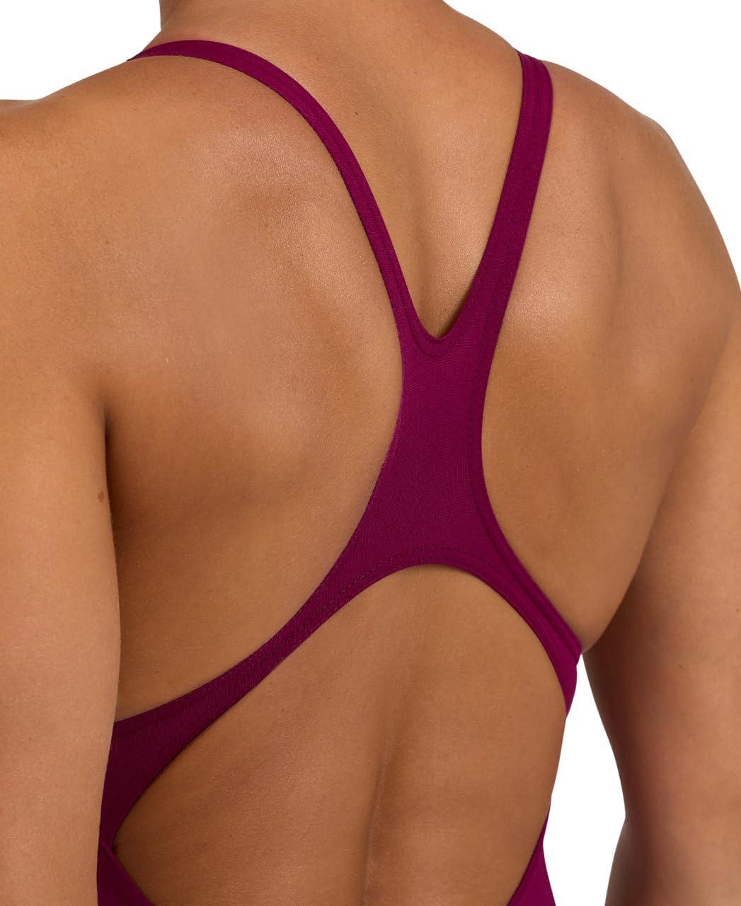 Arena Womens Solid Team Swimsuit Swim Pro Back MaxLife Open Back Bathing Suit Athletic Swimwear(Red Fandango/White)