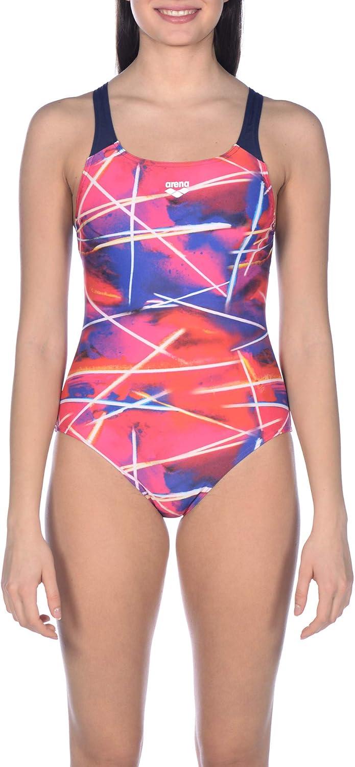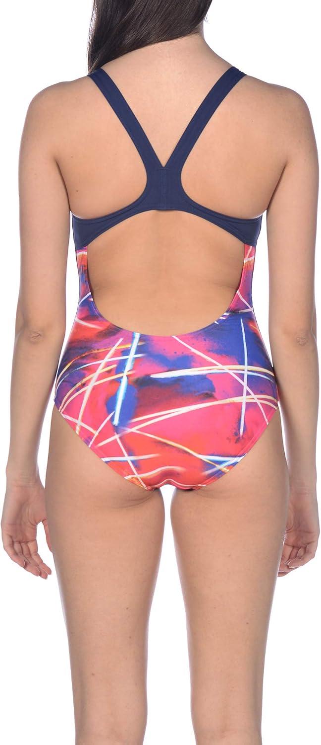 ARENA Women’s Standard Print Swim Pro Back MaxLife One Piece Athletic Training Swimsuit(Light Beams Navy)
