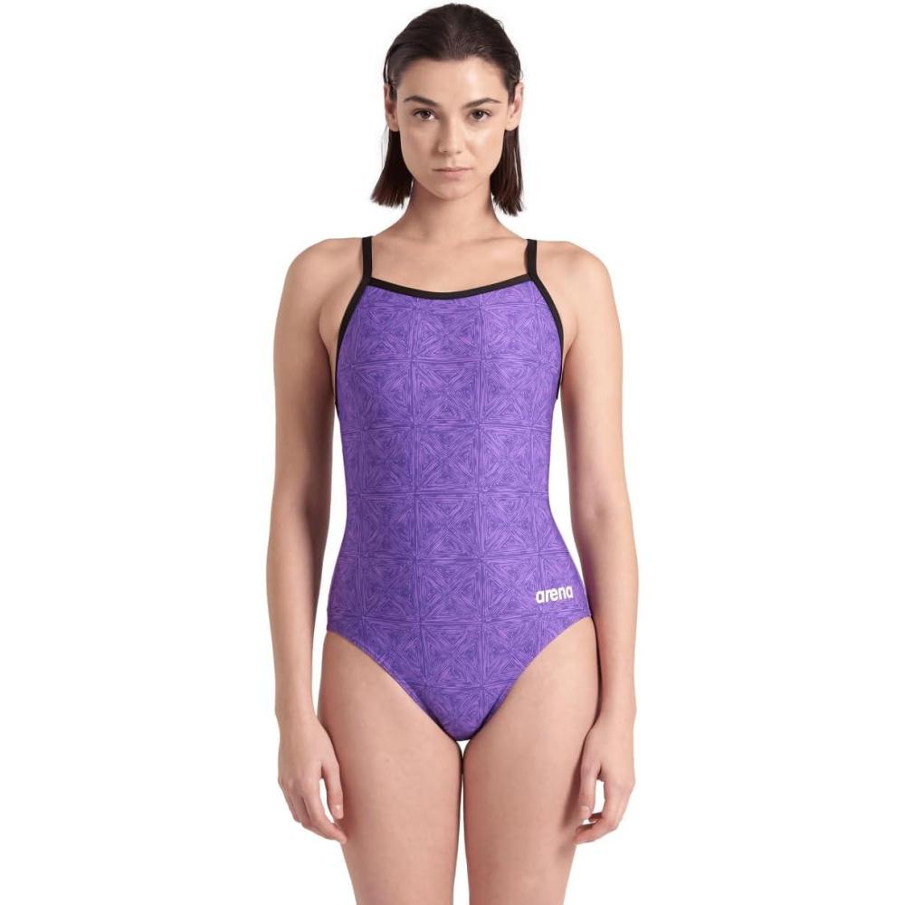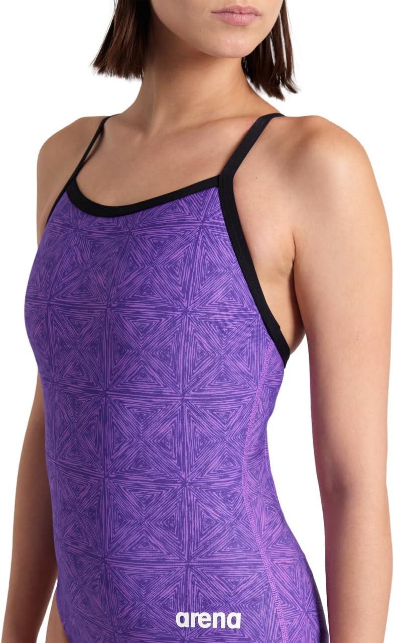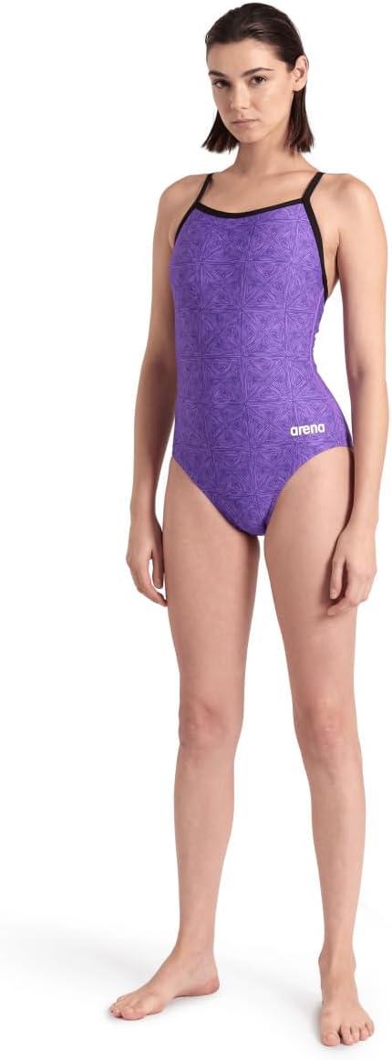 Arena Women’s Team MaxLife Swimsuit Solid Challenge Back Sports One Piece Competition Training Bathing Suit Athletic Swimwear(Black/Team Purple)