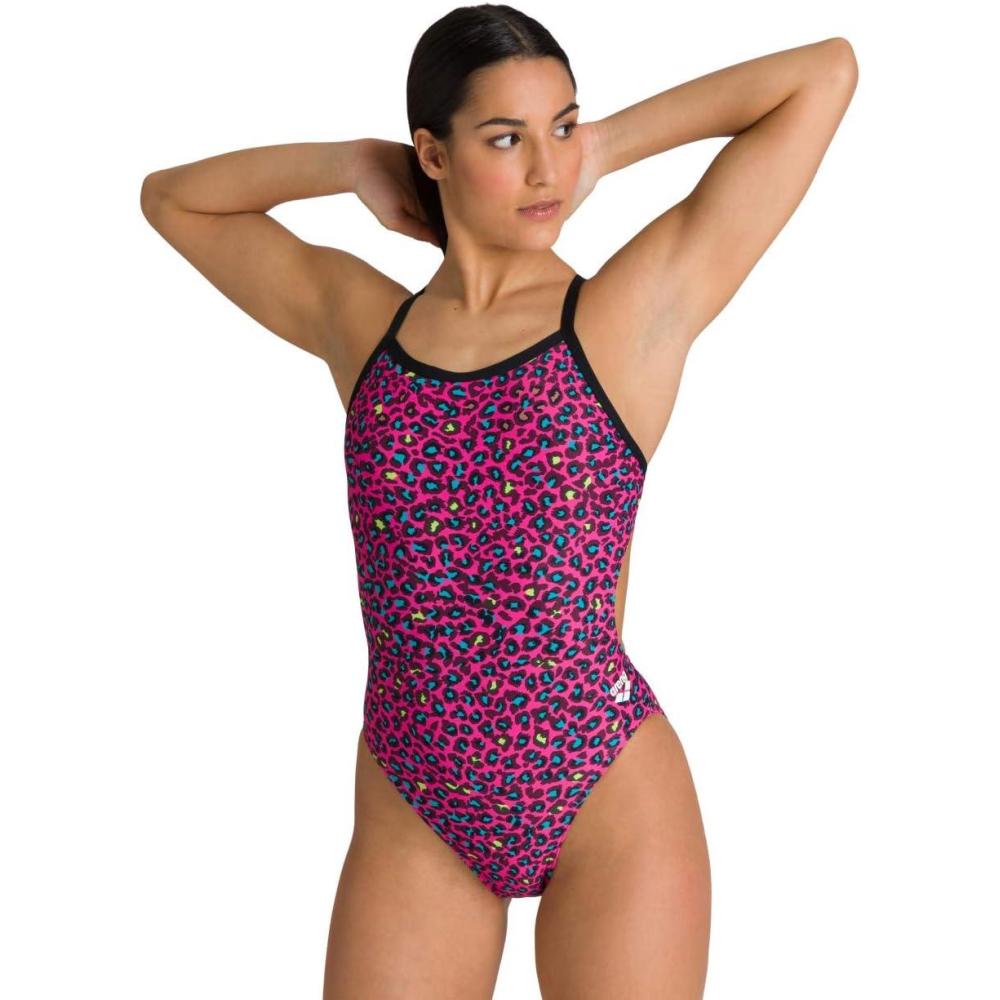ARENA Womens Tulum Challenge Back Onepiece Swimsuit(Leopard Pink)